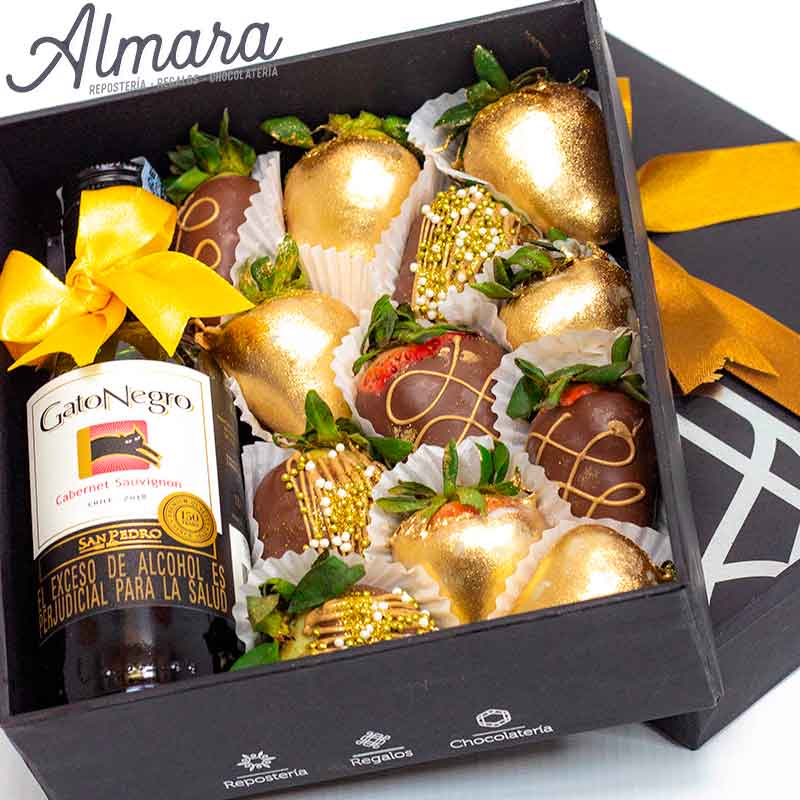 Caja de fresas y piba de vino