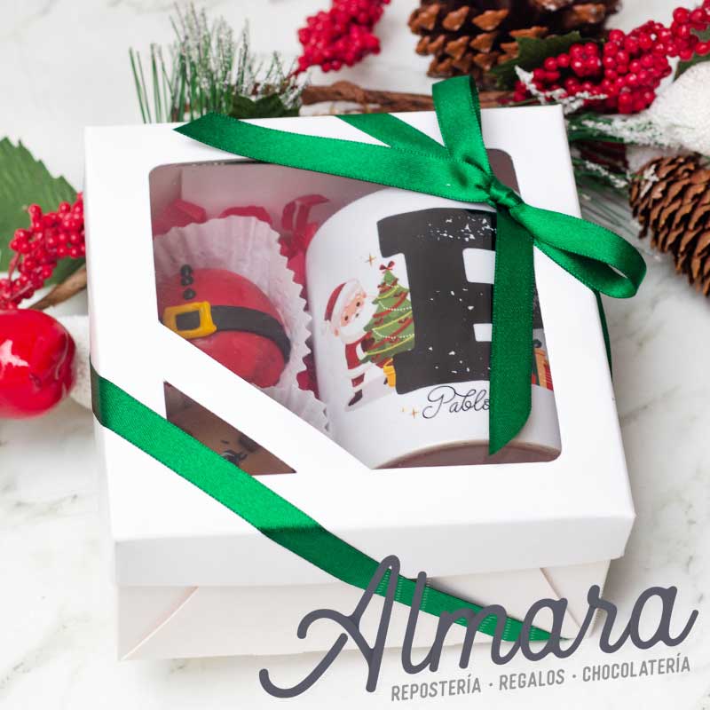 • 1 Mug de 11 onzas con temática navideña, personalizable con nombre e inicial sin costo adicional, lo que lo hace aún más especial y único.