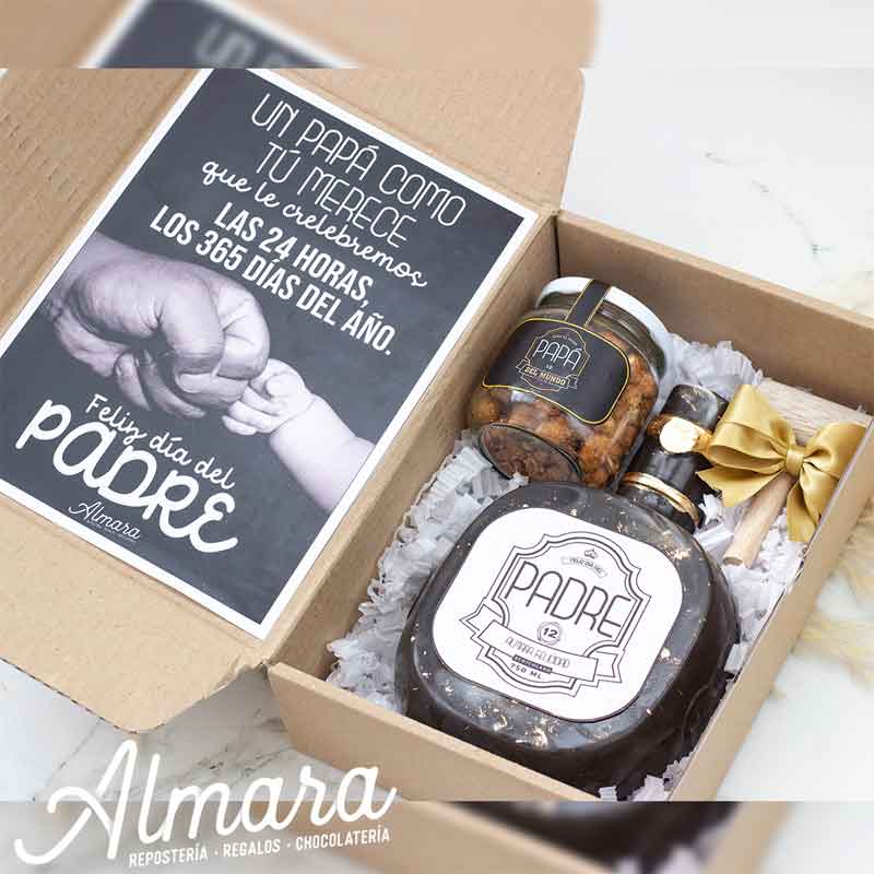 • Botella de chocolate con etiqueta alusiva a la temática 100% comestibles