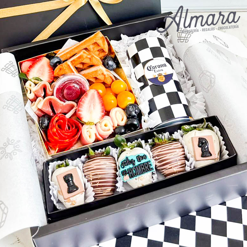 • Empaque caja de cartón 24*24*7cm etiqueta con mensaje dia del hombre