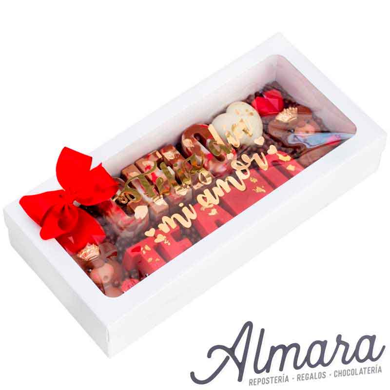 • Caja de con ventana y mensaje en vinilo en la tapa "Feliz día mi amor"