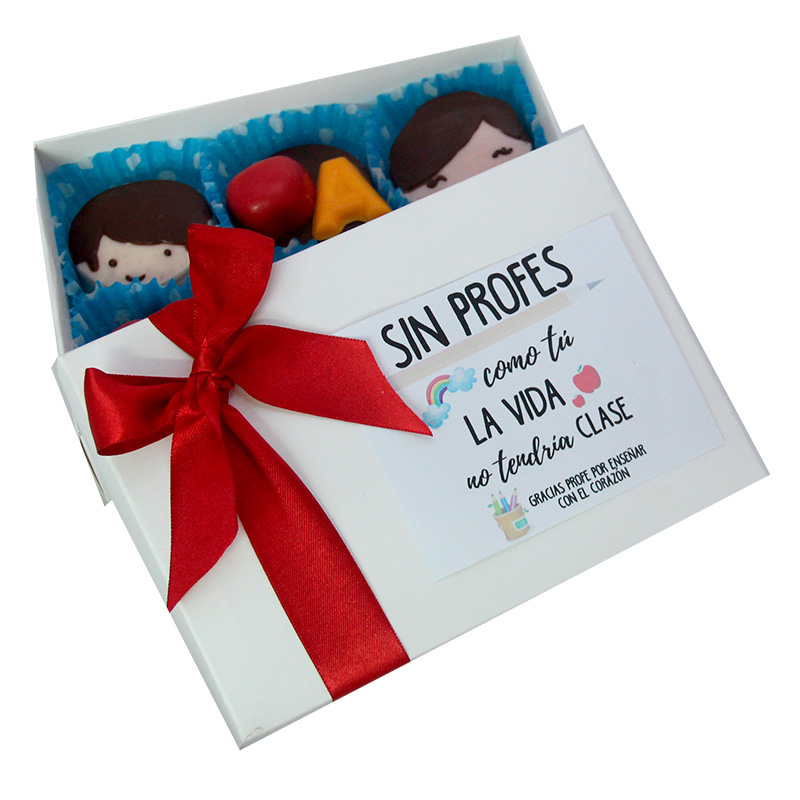 • Caja color kraft medidas 17,5*12,5*4 cm con mensaje adhesivo del día del profesor