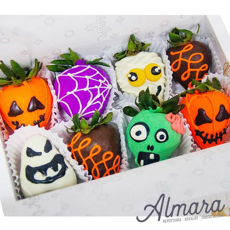 • Fresas cubiertas de chocolate y decoradas terrorificamente