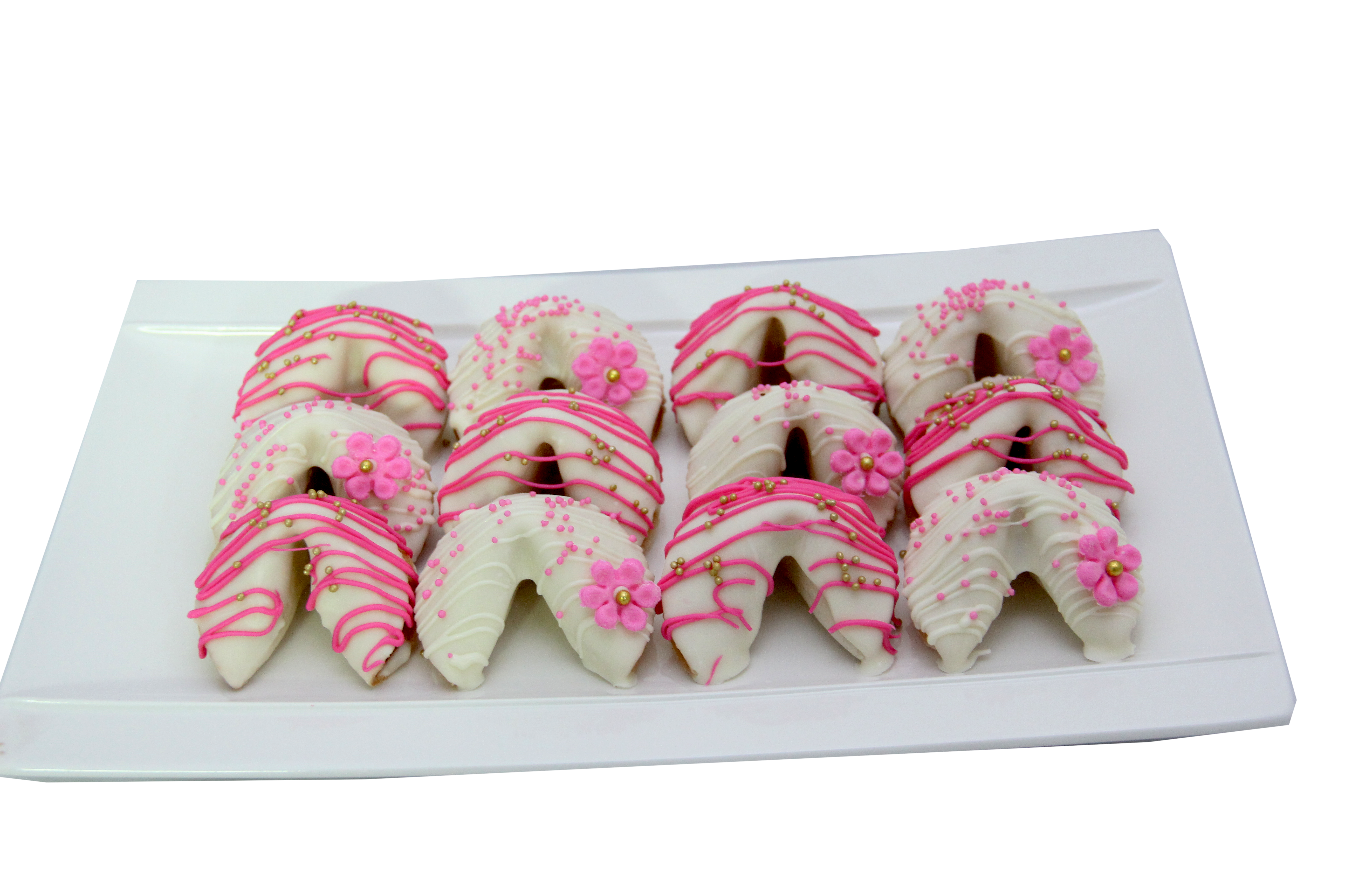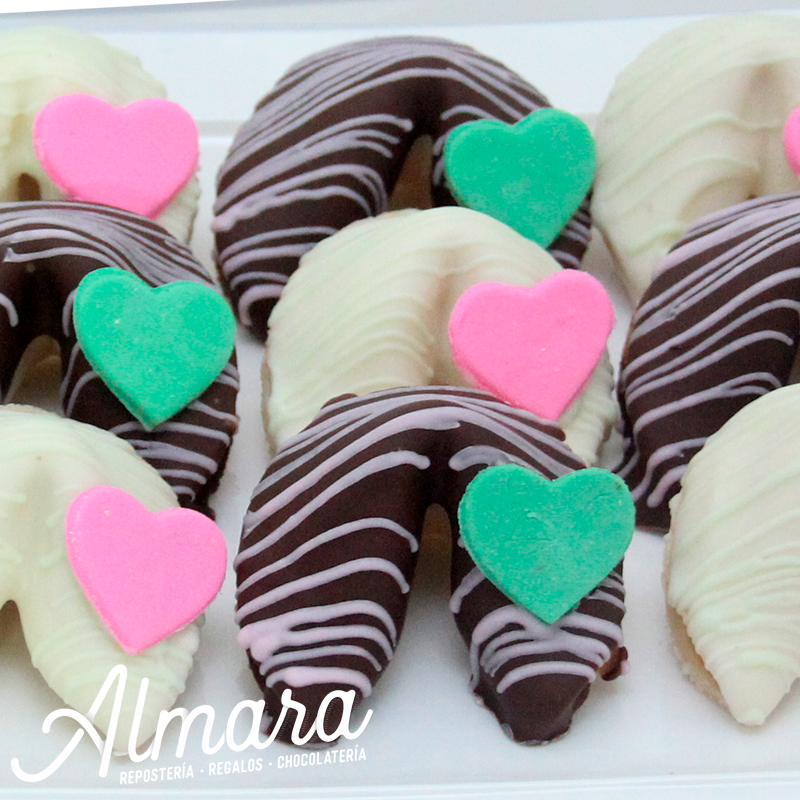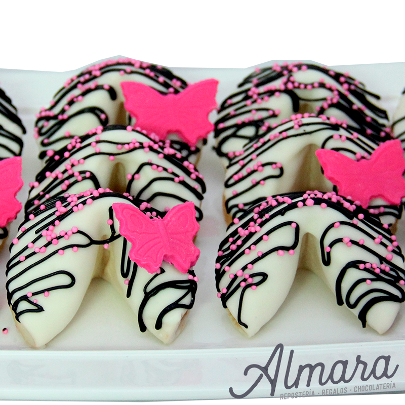 -1 Dulce y dorada galleta con una forma muy especial bañadas en chocolate blanco o semiamargo decoración alusiva a la temática solicitada