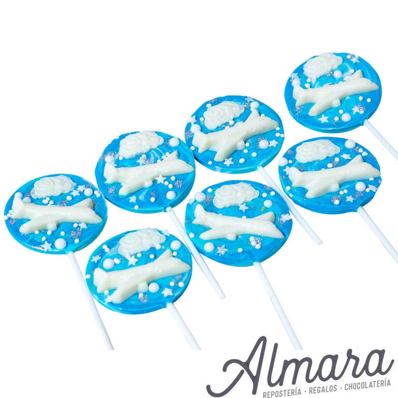 • Paleta de chocolate blanco con colorantes alimenticios rellena quipito,diametro de 6cm diseños surtidos