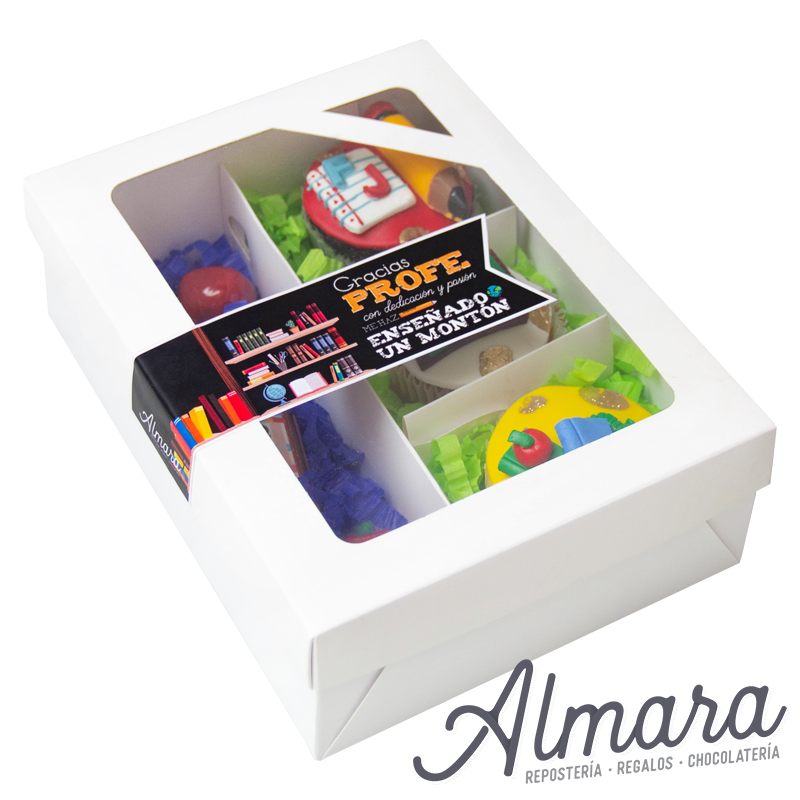 • Caja de cartón medidas 23,5*17,5*7,5 cm con etiqueta personalizable