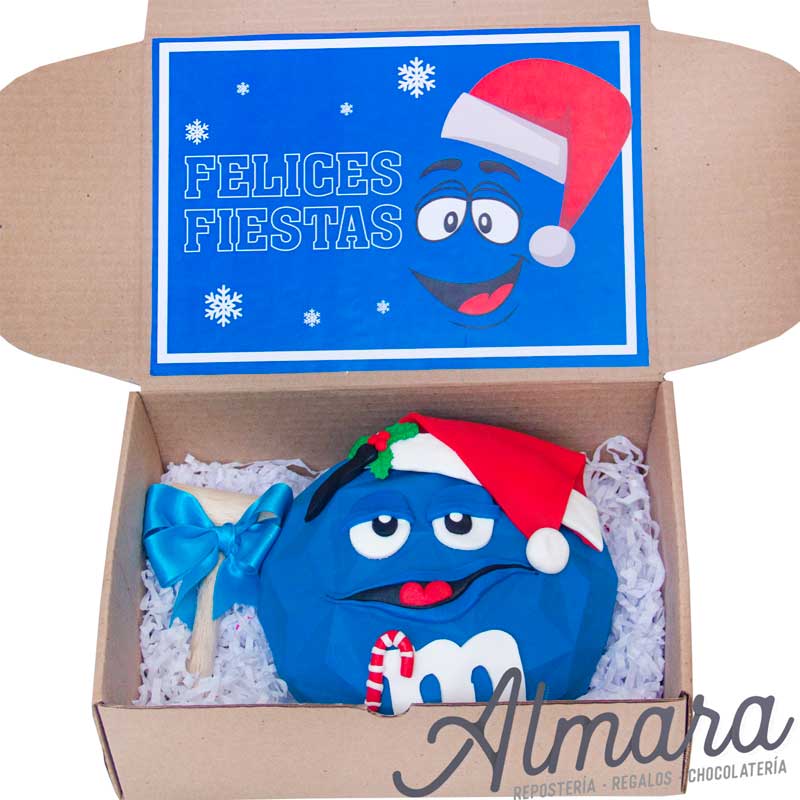 • Piñata esfera prisma diámetro 17,5 cm pero 264 gramos elaborada en chocolate blanco con colorantes alimenticios, decoración cara de personaje en fondant.